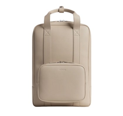 - Monos Metro Backpack: It’s chic, water-resistant, made of ultra-microfibre vegan leather. You can “build” what you need with their QuickSnap™ Modular Kit System and use them interchangeably with the Metro Backpack and Metro Duffel!