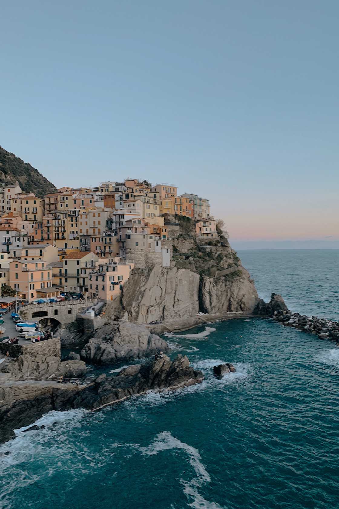 Go to Manarola at sunset or sunrise to get an epic view and photo. Manarola is genuinely the most picturesque town, and you can get an even more rewarding view by visiting in either early morning or at night.